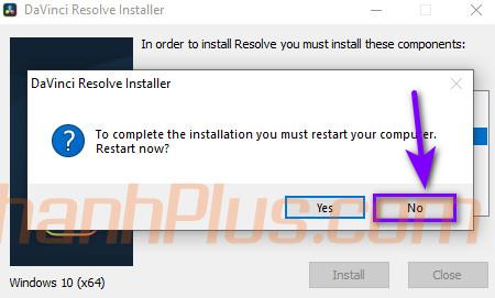Bạn hãy chọn No khi có yêu cầu khởi động lại máy nhé