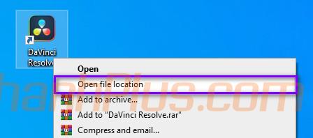 Ra màn hình chính, click chuột phải vào biểu tượng phần mềm và chọn Open file location