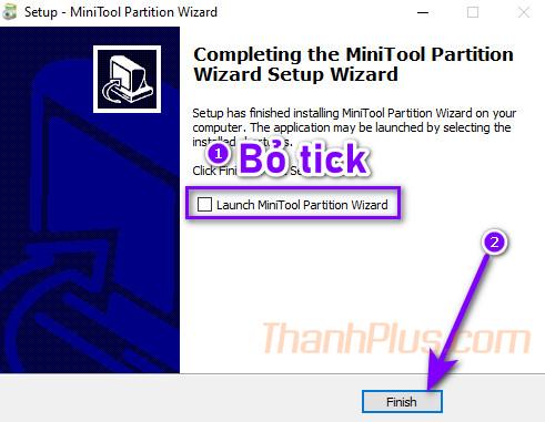 Bỏ tick ô Launch như ảnh dưới và click Finish
