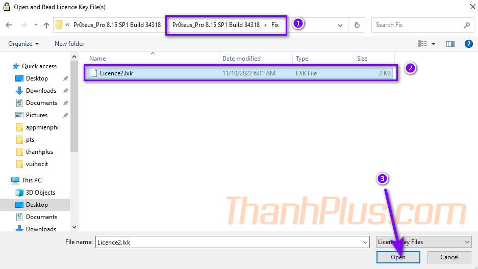 Đến thư mục vừa giải nén ở bước 1 > vào thư mục Fix và chọn file Licence2.lxk và click Open