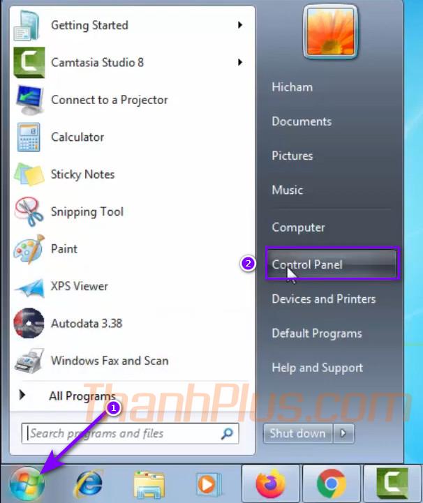 Đầu tiên hãy click vào biểu tượng Windows bên dưới góc trái màn hình và chọn Control Panel