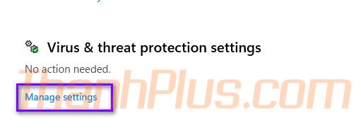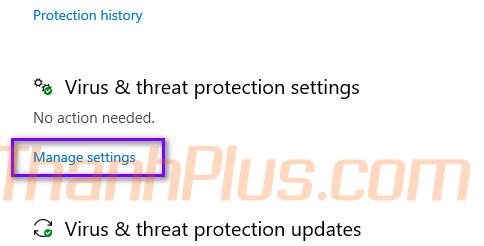 Tại phần Virus & threat protection settings hãy bấm vào Manage settings